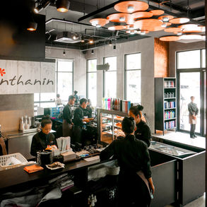 ร้านนี้ตั้งอยู่ระหว่างทางไปนครวัดจึงถูกออกแบบให้มีความเชื่อมโยงถึงศิลปะ ประวัติศาสตร์ท้องถิ่นโดยเอา จุดเด่นสำคัญสำคัญของสถาปัตยกรรมมาเล่นให้เกิดดีไซน์และ artform ตัวอาคารดั้งเดิมเป็นอาคารที่ทำการการท่องเที่ยวกัมพูชา เป็นรูปแบบของสถาปัตยกรรมเขมรร่วมสมัย การออกแบบมีการใช้พื้นผิวที่เลียนแบบวัสดุธรรมชาติให้ความรู้สึกสมจริง ใช้วัสดุที่หาได้ง่ายสามารถก่อสร้าง และซ่อมแซมได้ง่ายด้วยช่างท้องถิ่น